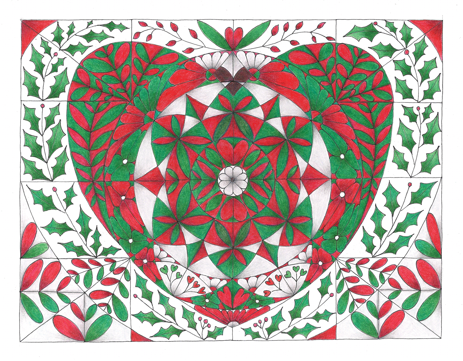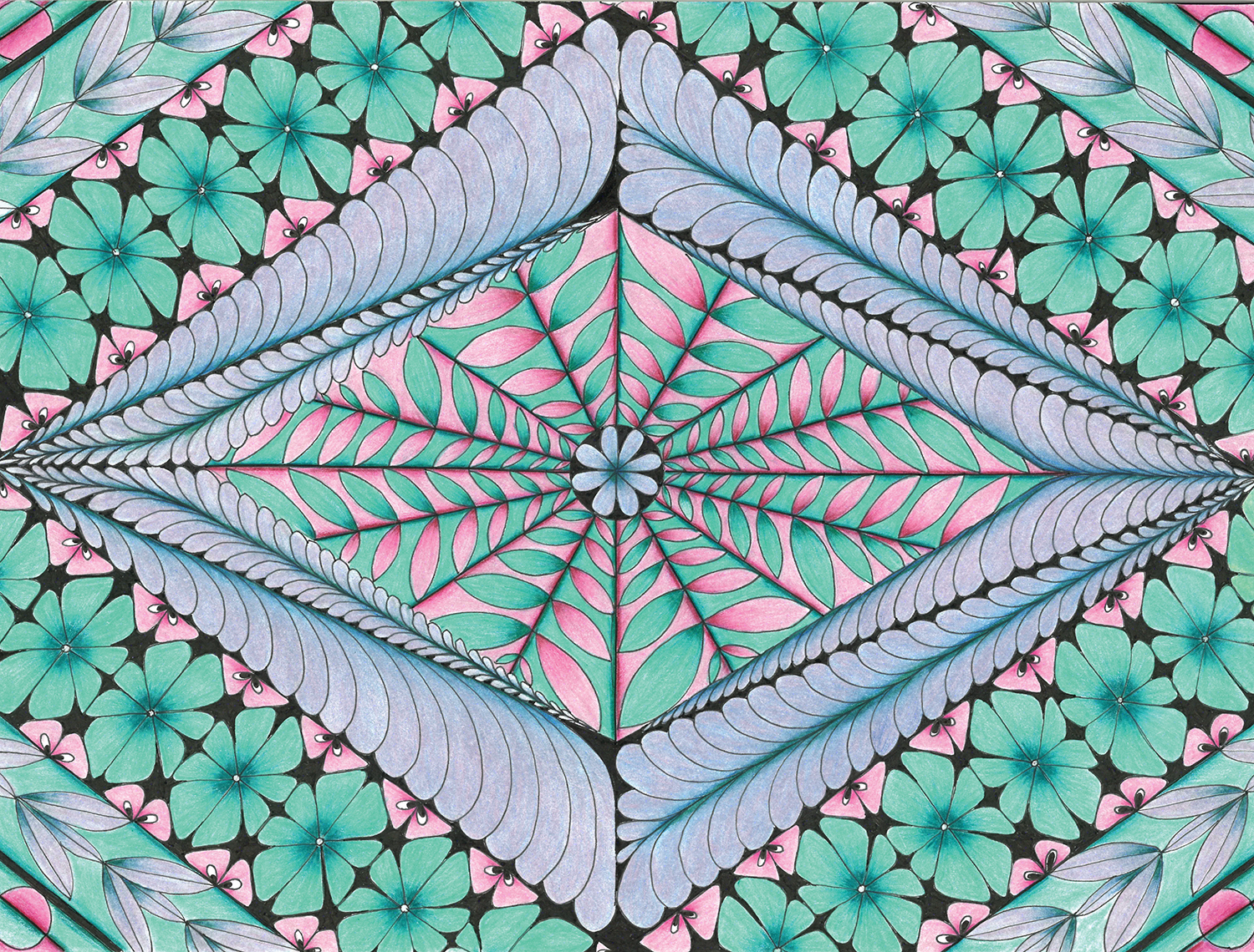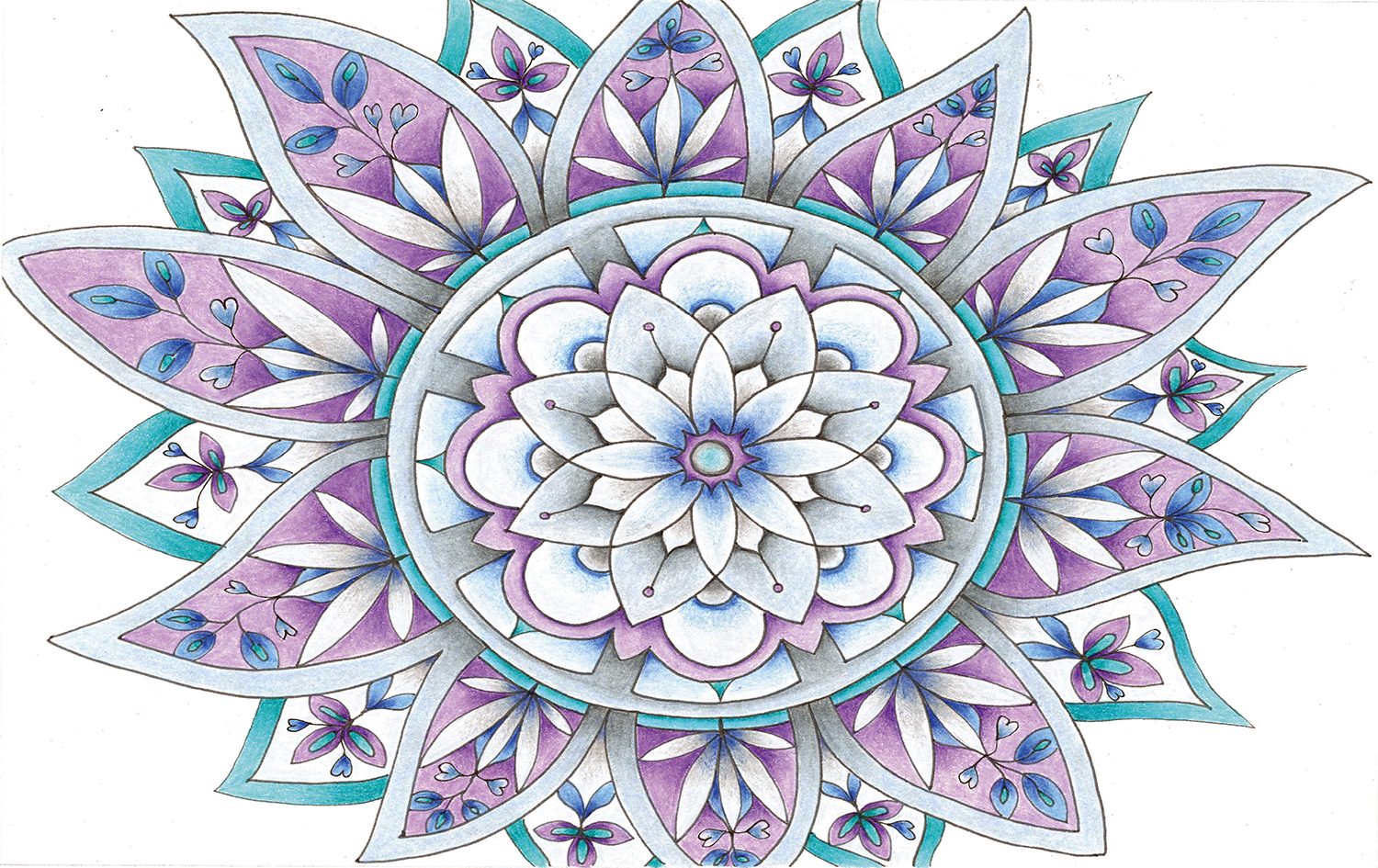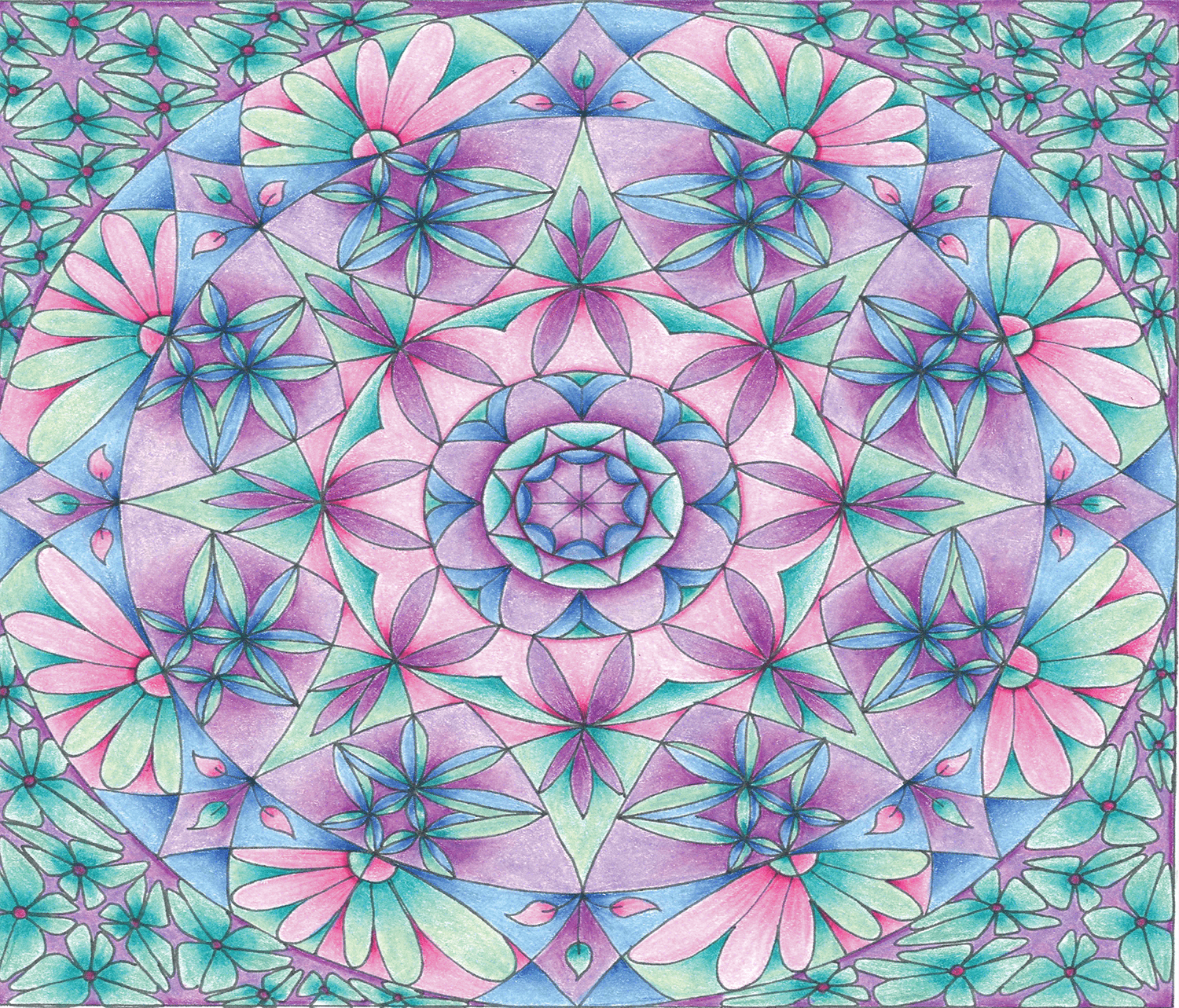 Mandala Party, 8.5” x 11” colored pencil on paper